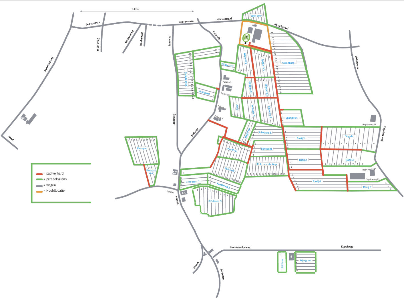 Hieronder vindt u de plattegrond van 'Mortelsgraaf'. Deze plattegrond is onderverdeelt in blokken waardoor u gemakkelijk uw boom kunt vinden. U kunt zelf of met uw klanten bomen bezichtigen en/ of uitmerken op afspraak.